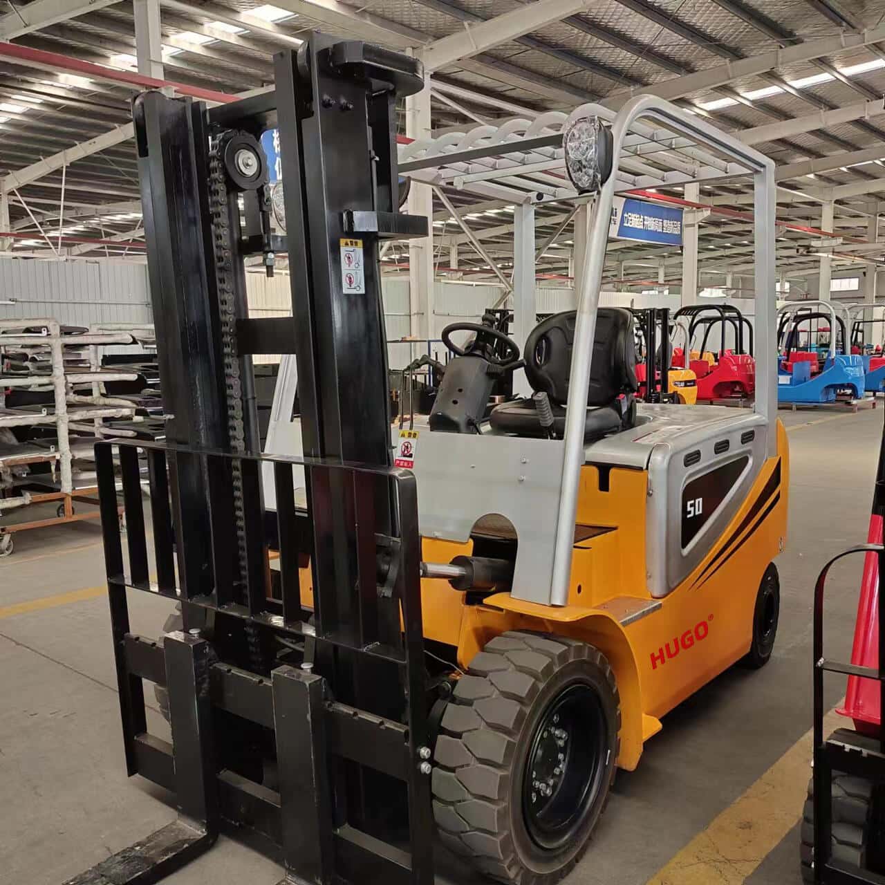 Carretilla elevadora eléctrica tipo equilibrio de cuatro ruedas El montacargas eléctrico de cuatro ruedas es un equipo logístico eficiente y respetuoso con el medio ambiente, muy adecuado para una variedad de ocasiones que requieren una logística eficiente. El producto utiliza un tren motriz eléctrico para maximizar la eficiencia operativa y la eficiencia energética. Esta carretilla elevadora también está equipada con horquillas de elevación y descenso para adaptarse a las necesidades de transporte de diversas mercancías, y cuenta con una variedad de mecanismos de protección de seguridad, que se convierten en la esencia de este producto. La tracción a las cuatro ruedas juega un papel clave en la maniobrabilidad y estabilidad de las carretillas elevadoras. Por lo tanto, el producto utiliza tracción en las cuatro ruedas para adaptarse a diferentes superficies y entornos de la carretera, optimizando la experiencia de manejo del conductor. Al mismo tiempo, el diseño cómodo y razonable de la cabina de la carretilla elevadora no sólo es compatible con el panel de instrumentos, sino que también tiene un asiento ergonómico, proporcionando así un entorno de trabajo más cómodo para el conductor.
